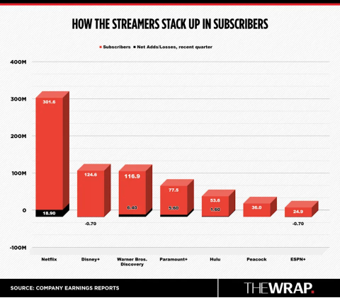 尽管疫情期间流媒体行业爆发了一波,但大部分新增用户被Netflix、迪士尼和华纳收入囊中,派拉蒙的Paramount+和NBC环球的Peacock只是喝了一点汤。
