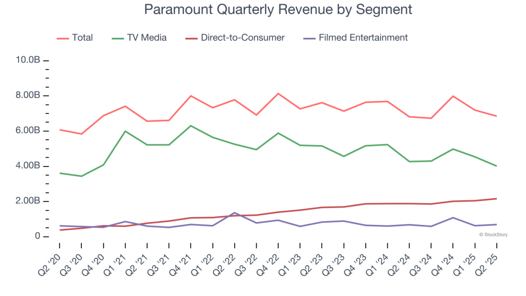 在传统电视业务方面,派拉蒙的收入下降6%,至40.1亿美元。营收则下降了15%,至8.63亿美元。