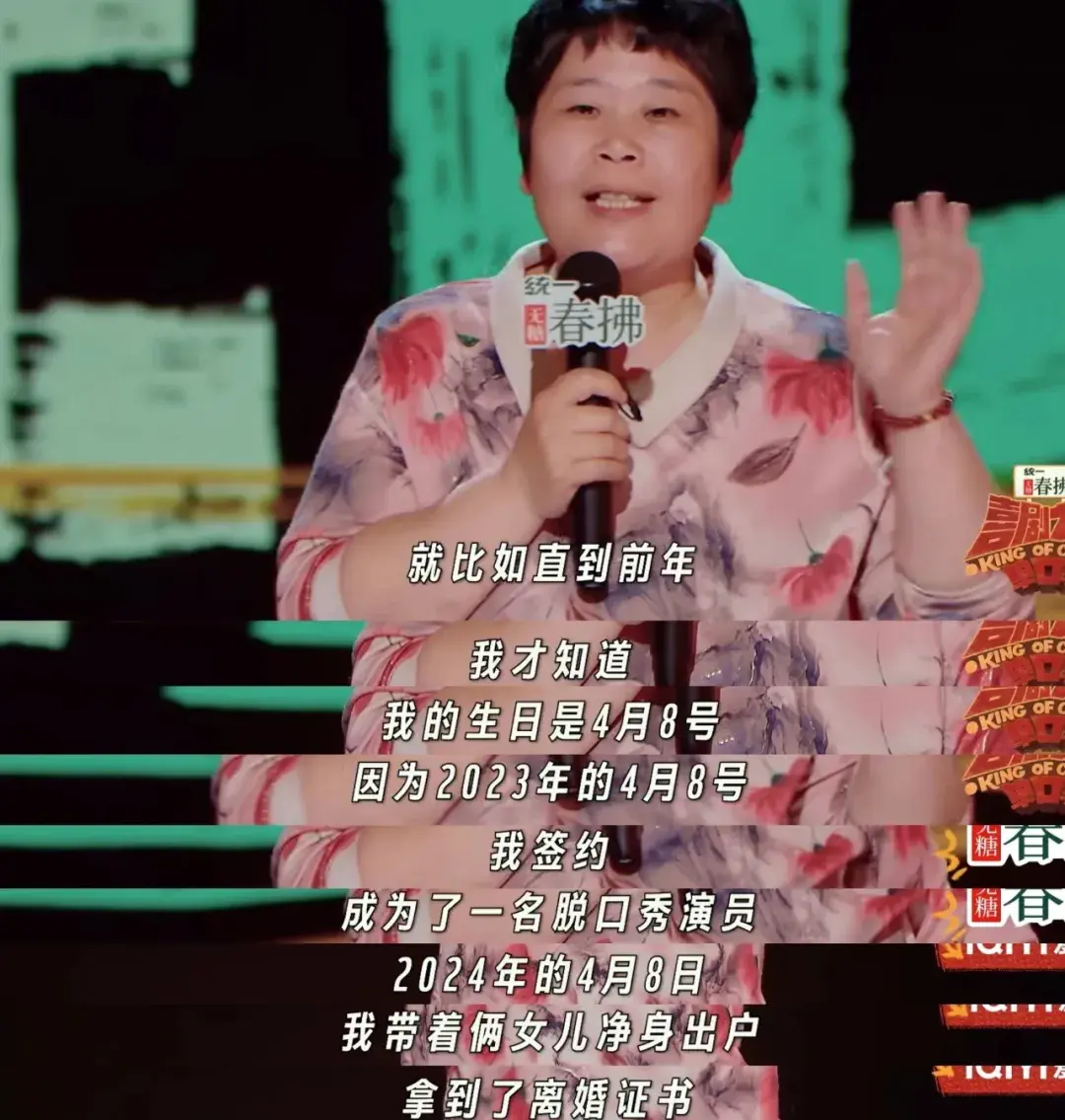 被父母包办的婚姻,被“柯基丈夫”跳起来家暴,被婆家阴阳生不出儿子。在村里没有宅基地,做过环卫工,出走离婚后选择用脱口秀养活自己和女儿。