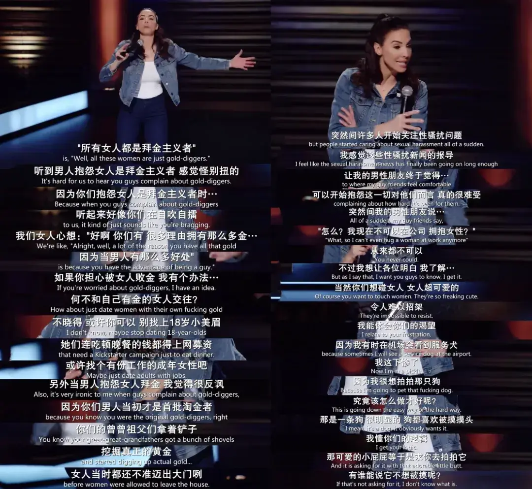 如果连这种程度的苦难,这么温和的表达都接受不了,那国外女性脱口秀的内容可能会让国内观众花容失色了。