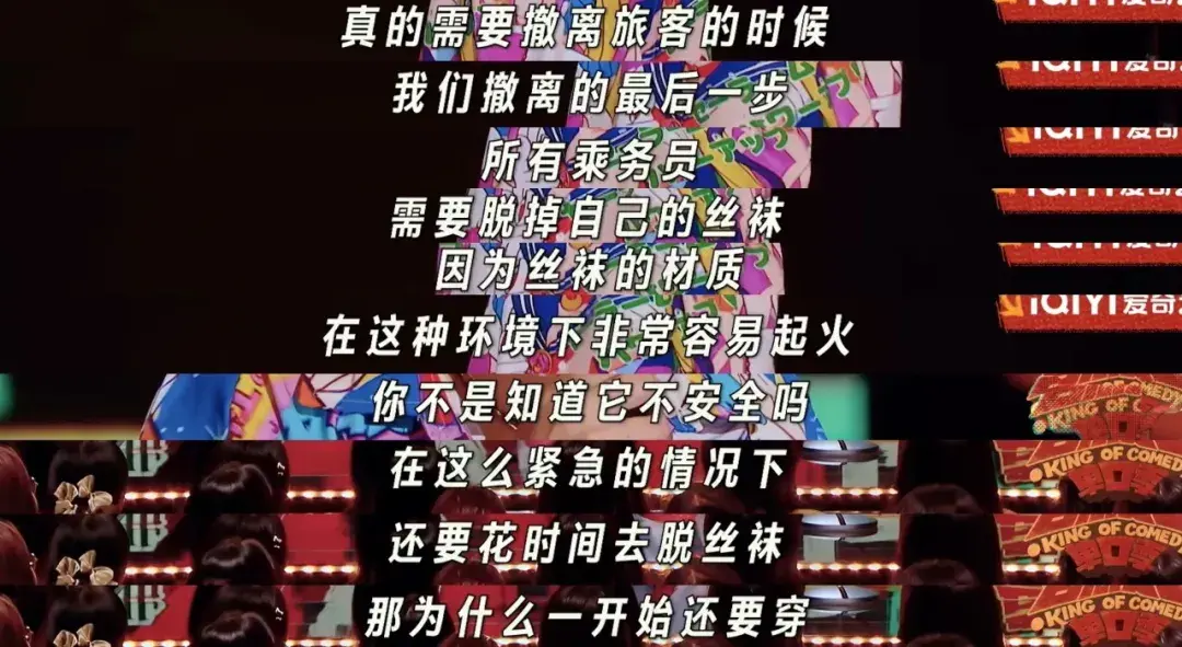 明明在安全撤离的最后一步是脱掉丝袜,却仍然要求乘务员一开始穿着丝袜,嘻哈的乘务员朋友就是因为穿着裙子最后一个从飞机撤离,最后双腿受伤。
