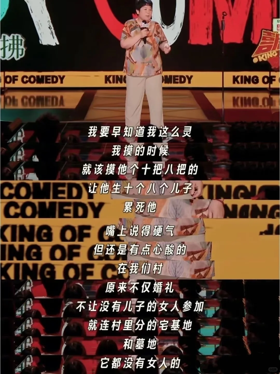 她们从小就被父母预设了一个不存在的婆家,任何事情都会变成“做不好就会被婆家笑话”,似乎女人一出生就被不存在的买家预定了。当唐香玉站上脱口秀舞台之后,家里的族谱才首次写上了她的名字,后面还要加个括号:上过脱口秀节目。