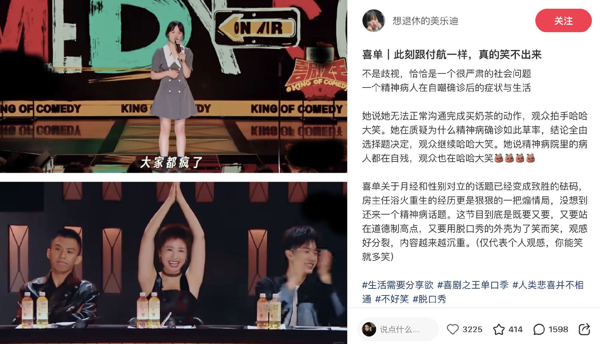 今年最出圈的女性脱口秀演员的故事下面,最常出现的评价是“你把痛苦当玩笑讲,可这并不好笑”。