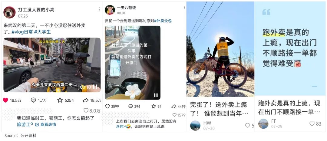 然而不止是大学生,翻开社交平台,越来越多人送外卖上瘾:打工族心不在焉,数着秒等下班变身“红黄蓝骑士”;旅游特种兵弃打卡点不顾,玩到哪外卖送到哪……全民送外卖热潮滚滚而来。