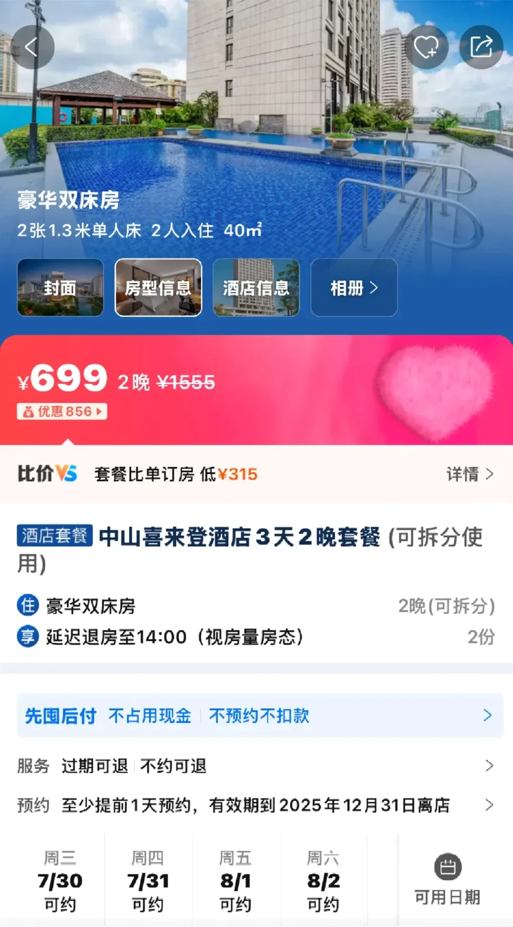 中山喜来登酒店3天2晚699元,折合每晚不到350块,佛山顺德喜来登,487元起,惠州白鹭湖雅居乐喜来登度假酒店,449元起……