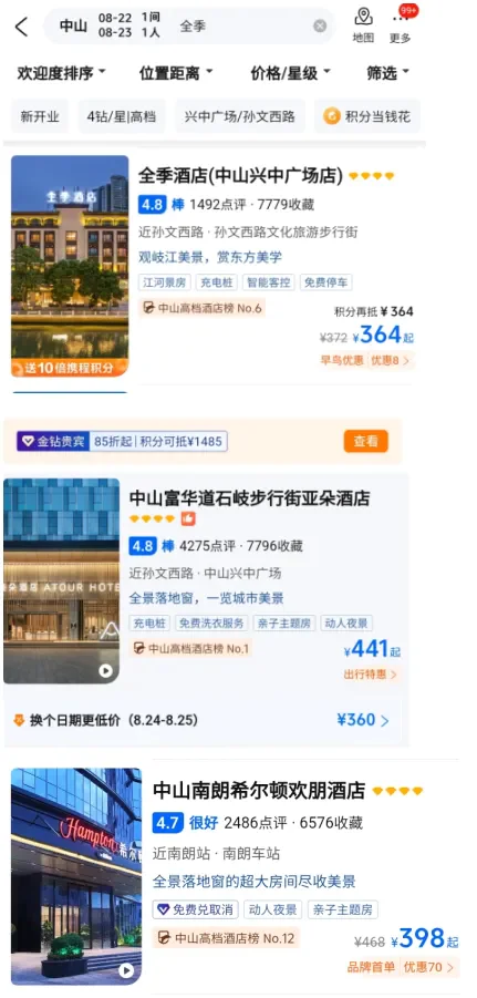 八月初,我计划去广东出差,随手刷了下携程上的酒店,结果有点意外: