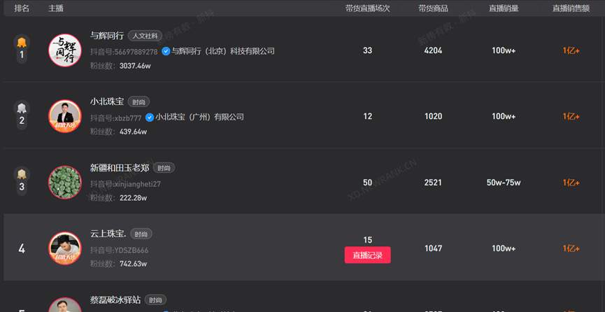 还是参考新抖数据,今年5月、6月、7月,与辉同行的销售额连续三个月都位列行业第一,而东方甄选这三个月里,一次都没能挤进10。