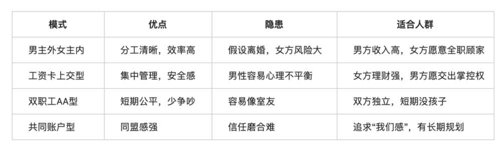 适合人群:女方理财能力强,男方乐意交出经济权,双方高度信任。