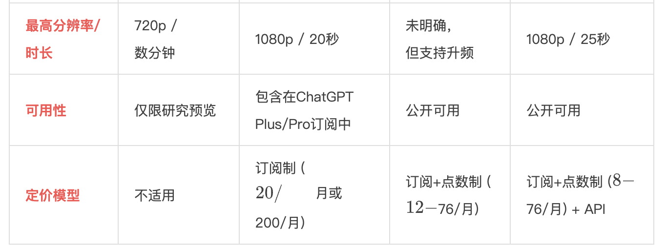 下表对当前主流的生成式视频/世界模型进行了全方位对比: