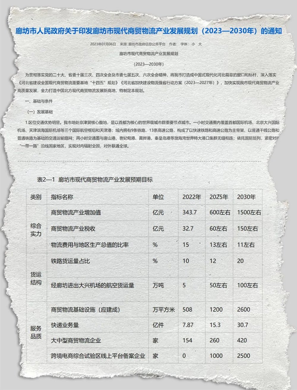 《廊坊市现代商贸物流产业发展规划(2023—2030年)》节选(图:廊坊市人民政府)▼