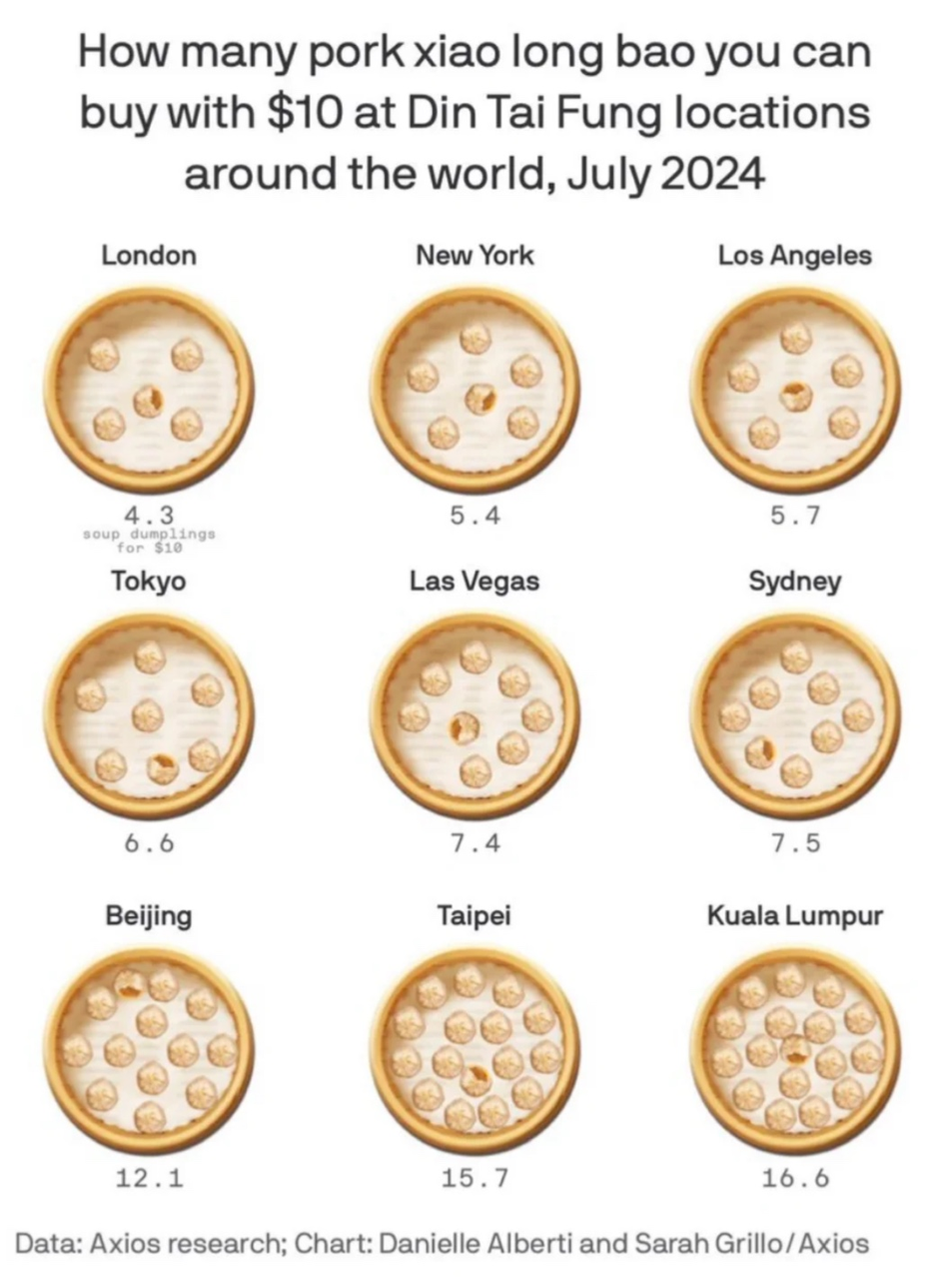 热爱鼎泰丰的美国人,甚至创造了一个鼎泰丰指数,用10美元能买几个小笼包来测算全球物价。