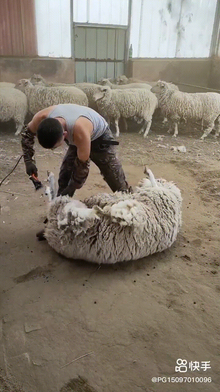 在用电动剪毛机之前,传统手工剪毛耗时耗力,往往需要拿绳子把三条羊腿绑在一起,放倒后慢慢剪。