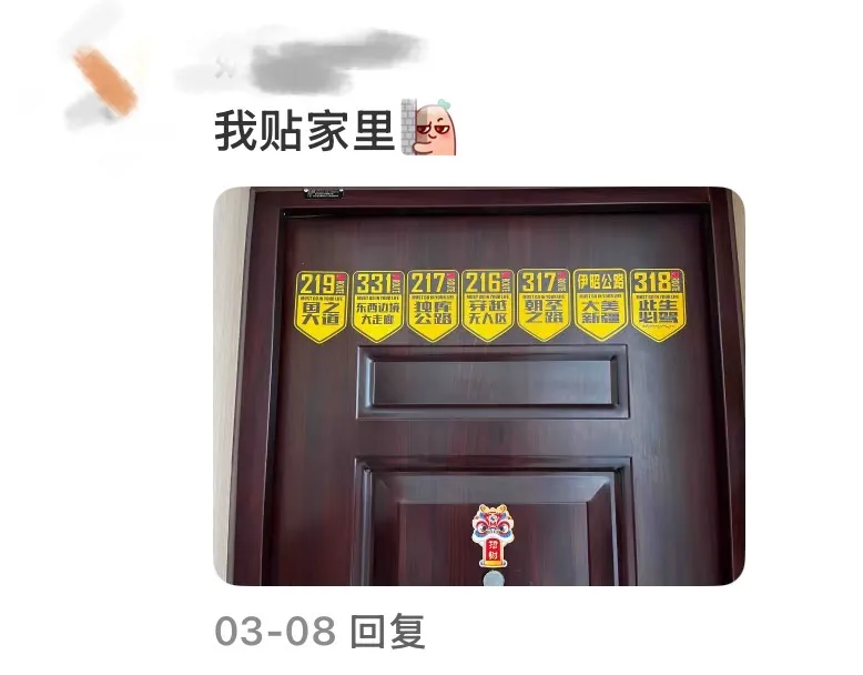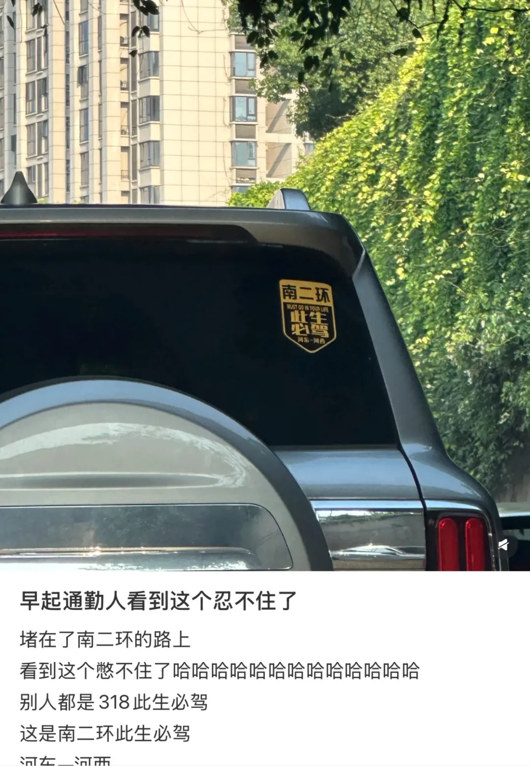 有人调侃,这贴纸是“路上壮胆符”,贴了默认别人不敢加塞,仿佛自带社会大哥Buff。“贴可爱图标,会被认为是马路新手,贴此生必驾318,对方路怒症上来,也得自行压制一下,反思是不是自己太着急了。”