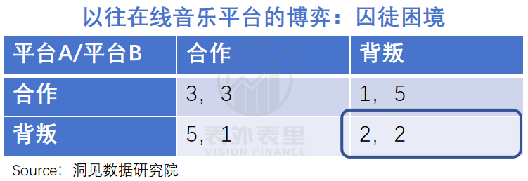 商人逐利的天性,会驱使平台都想做赢面最大的独占“背叛方”,形成博弈论里典型的“纳什均衡”。于是,为“一首歌抢破头”成了行业常态,平台版权费用一度逼近年营收1/3。