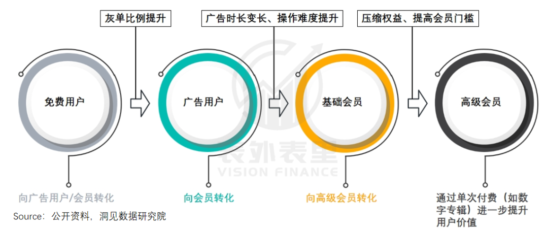 在此基础上,进一步通过用户分层运营,最大化榨取每一首歌、每一个用户的“价值”。