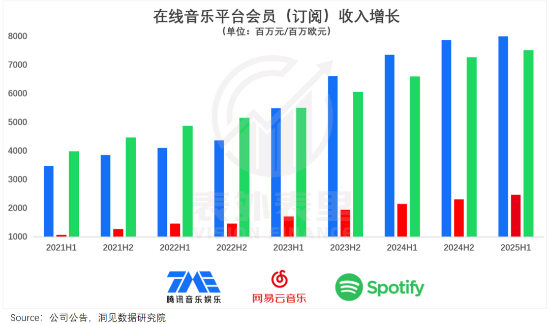 二季度,Spotify、腾讯音乐(TME)、网易云音乐集体迎来订阅用户增长,其中TME付费用户突破1.244亿人(同比增长6.3%),网易云订阅收入15.2%的涨幅也主要系“会员订阅规模拉动”。
