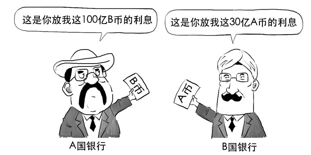 在约定的期间内,A国和B国还会按照约定的固定利率或浮动利率互相支付利息。