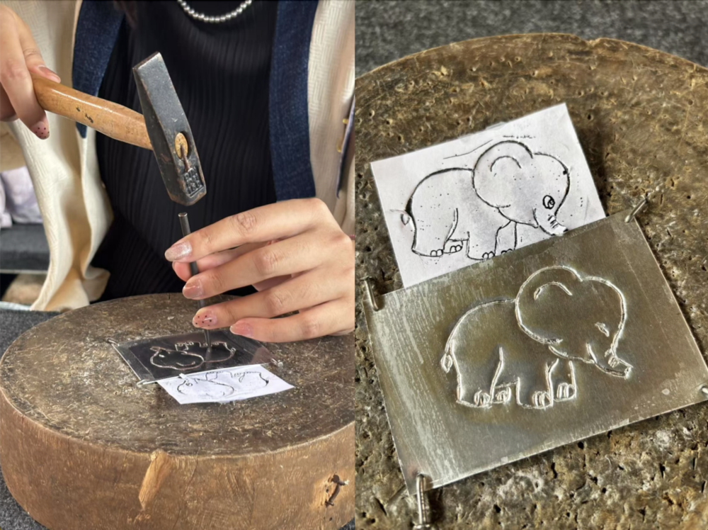 △根据模板敲出可爱的小象银饰。(图/受访者供图)