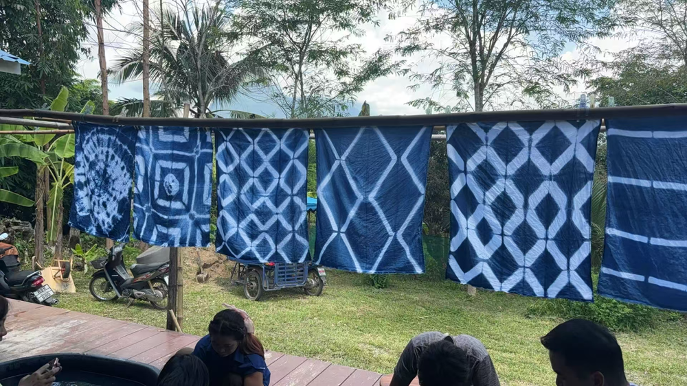 △课堂上,大家晾晒做好的扎染布料。(图/受访者供图)