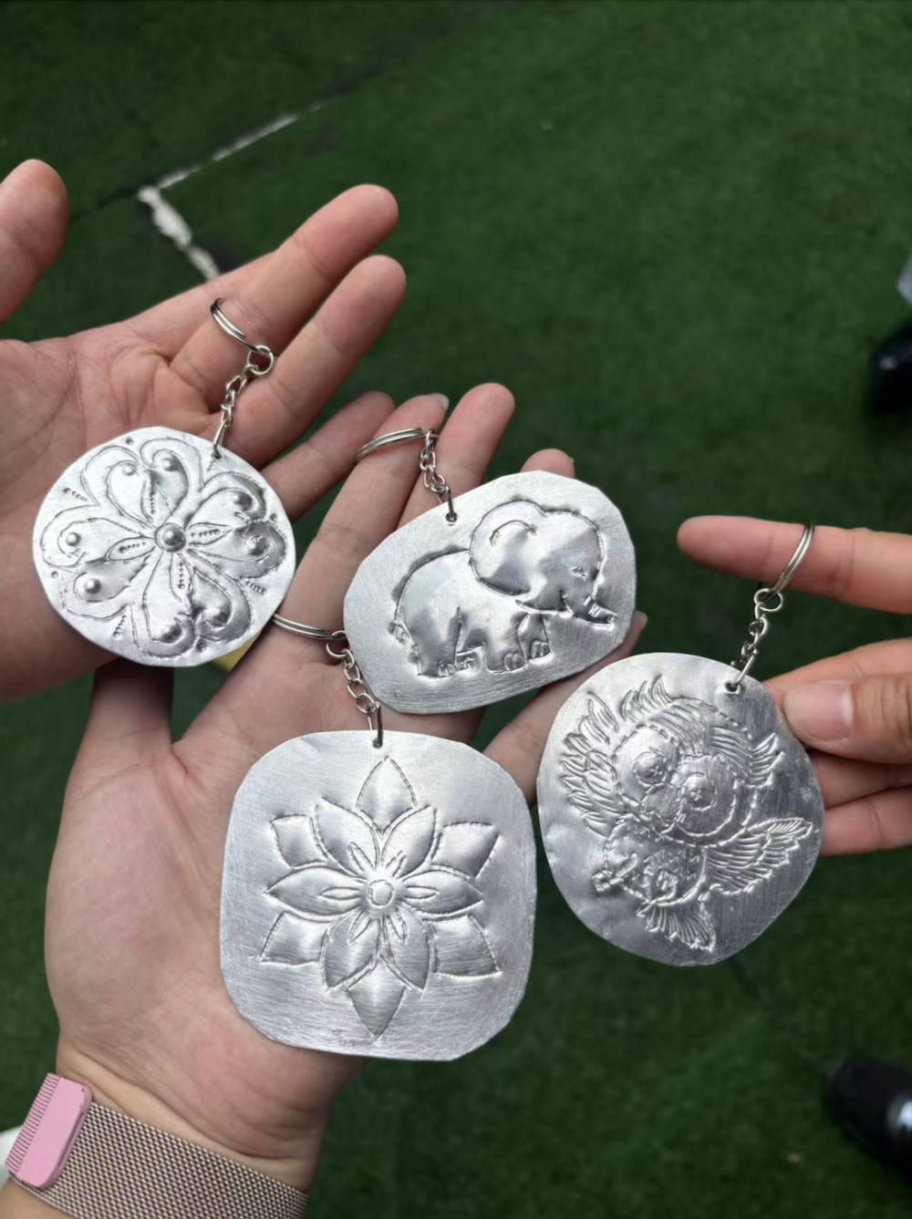 锡苏邦寺(银庙)旁的银饰课上,游客可以根据模板自己敲制可爱的大象挂链,也可以DIY戒指、项链;柴迪隆寺附近,参观完欧式和泰式结合的百年老宅,还可以动手制作捕梦网和兰纳纸灯笼。