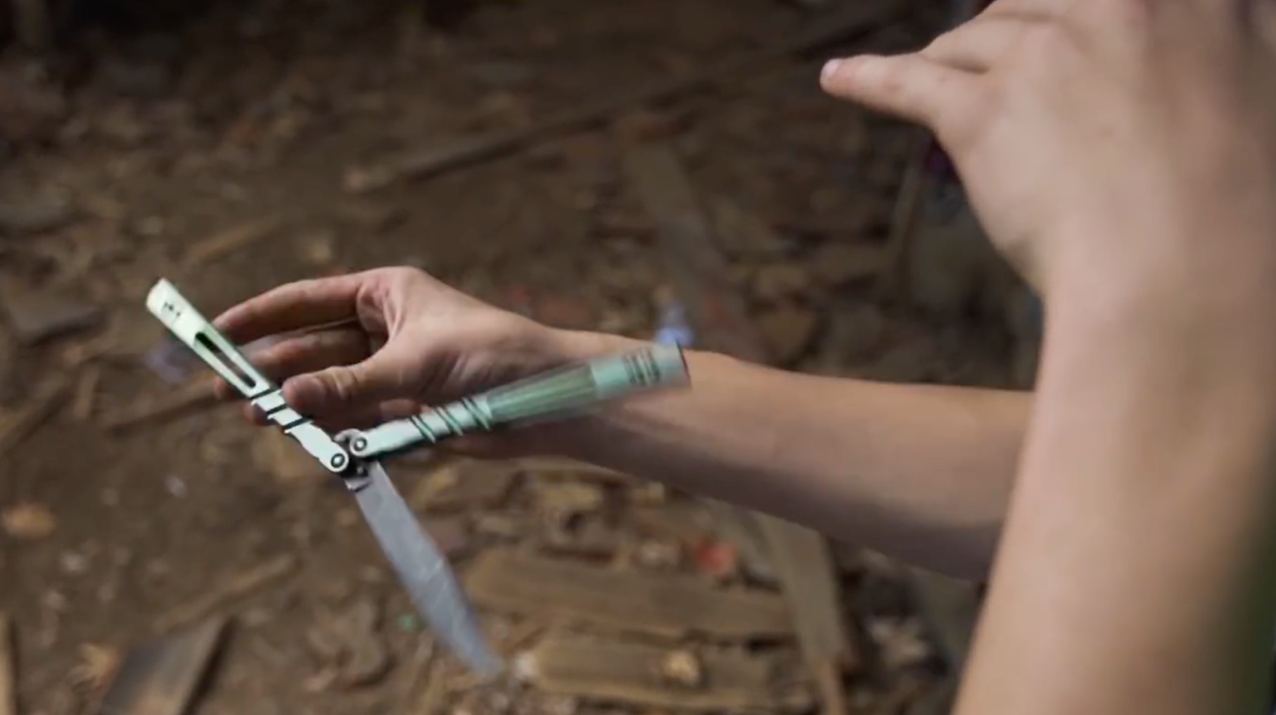 危险动作请勿模仿,蝴蝶刀属于管制道具,请勿带到公共场所!(via Kuma Films)