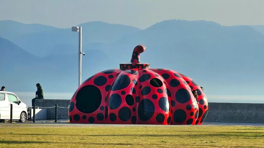 日本直岛,草间弥生设计的红南瓜/旅界实拍