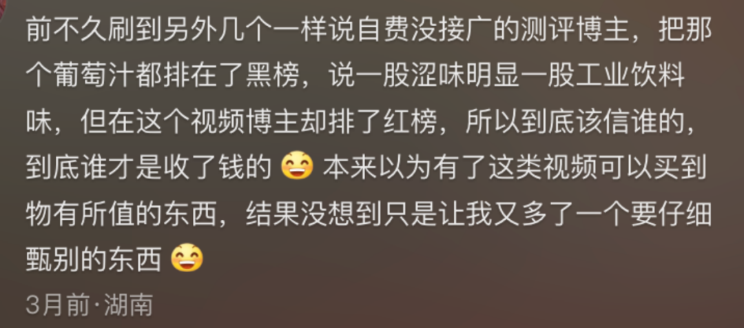 “真实测评”赛道也并非全是自己人,作为普通消费者,很多时候也不知道究竟该信谁。