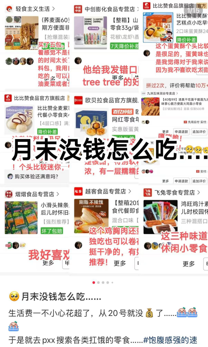 年轻人用网红零食填补现实中的匮乏感,尽管实物与展示之间存在巨大鸿沟,还是会仔细钻研过踩雷视频后反复下单。