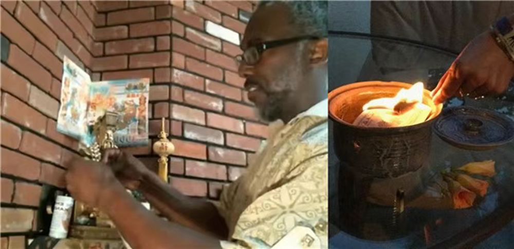 而且人家更是严格遵循 “中国传统以左为尊”,必须左手点火,快烧完了再毕恭毕敬放入香炉,主打一个虔诚。