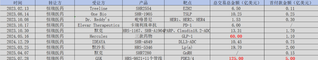 今年上半年,恒瑞的BD战略迎来高潮。3月,其Lp(a)抑制剂HRS-5346以首付款2亿美元、总交易额19.7亿美元授权默沙东,刷新自身首付纪录;8月,与GSK达成覆盖PDE3/4抑制剂HRS-9821及11个早期项目的合作,首付款5亿美元,潜在总额125亿美元,创下中国创新药单笔BD总交易额新高。交易对象从区域性药企跃升至默沙东、GSK等全球TOP10药企,印证了顶级MNC巨头对恒瑞研发实力的背书。