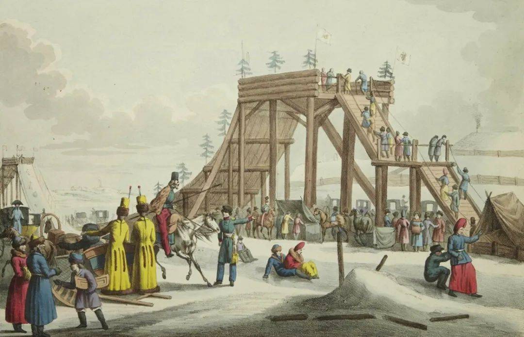 冰滑梯还走入了沙皇的宫廷,王公贵族、达官显贵也不惜千金之体,犯险求刺激。