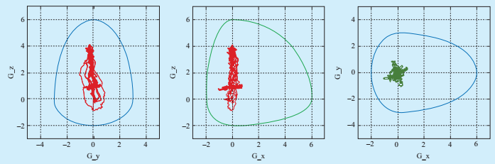 图2 卵形图为过山车G力各分量最大值。卵形图内部画的是某过山车实际值。