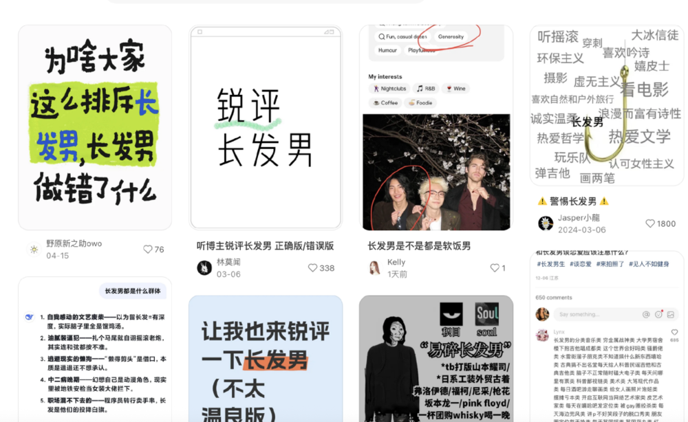 在小红书上搜索“避雷长发男”,能看到大量真实经历的投稿:他们不讲卫生、借文艺之名行骗炮之实、让女生意外怀孕却拒绝负责,甚至在恋爱中反复出轨。这些形象往往并非源自他们的真实人格,而是对女性理想型的精准“反向建模”——他们知道你想要什么,就复制出来给你看。