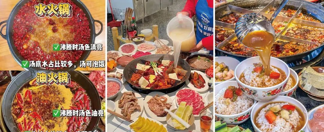 一是“水火锅”在川渝两地兴起,大有风靡之势。其实就是“高汤+少油”的模式,锅底减少牛油,掺水(骨汤)变多,口味变淡,锅底甚至可以泡饭吃;小料台也变成了“原汤+葱花”的极简搭配。对餐厅而言,这样一反传统火锅的改造,成本低了,客单价也低了,吃的人更多了。