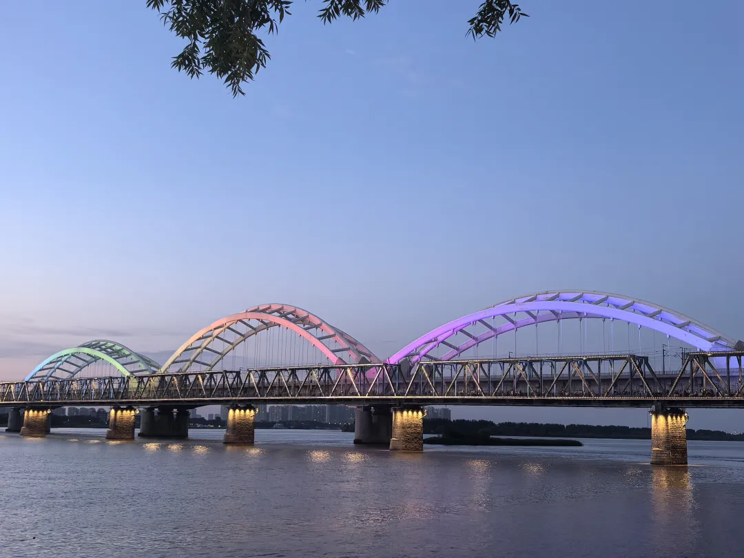夜晚降临,新江桥亮起彩灯,人们走在已成景观的中东铁路老江桥上,听列车从旁边呼啸而过。老江桥中间走人,两侧可以骑车。晚上大家从江南一直走到江北,文艺青年在桥上弹着吉他唱流行歌。其实走老江桥也是老传统了,萧红在她的黄金时代,就常和朋友们来老江桥散步。