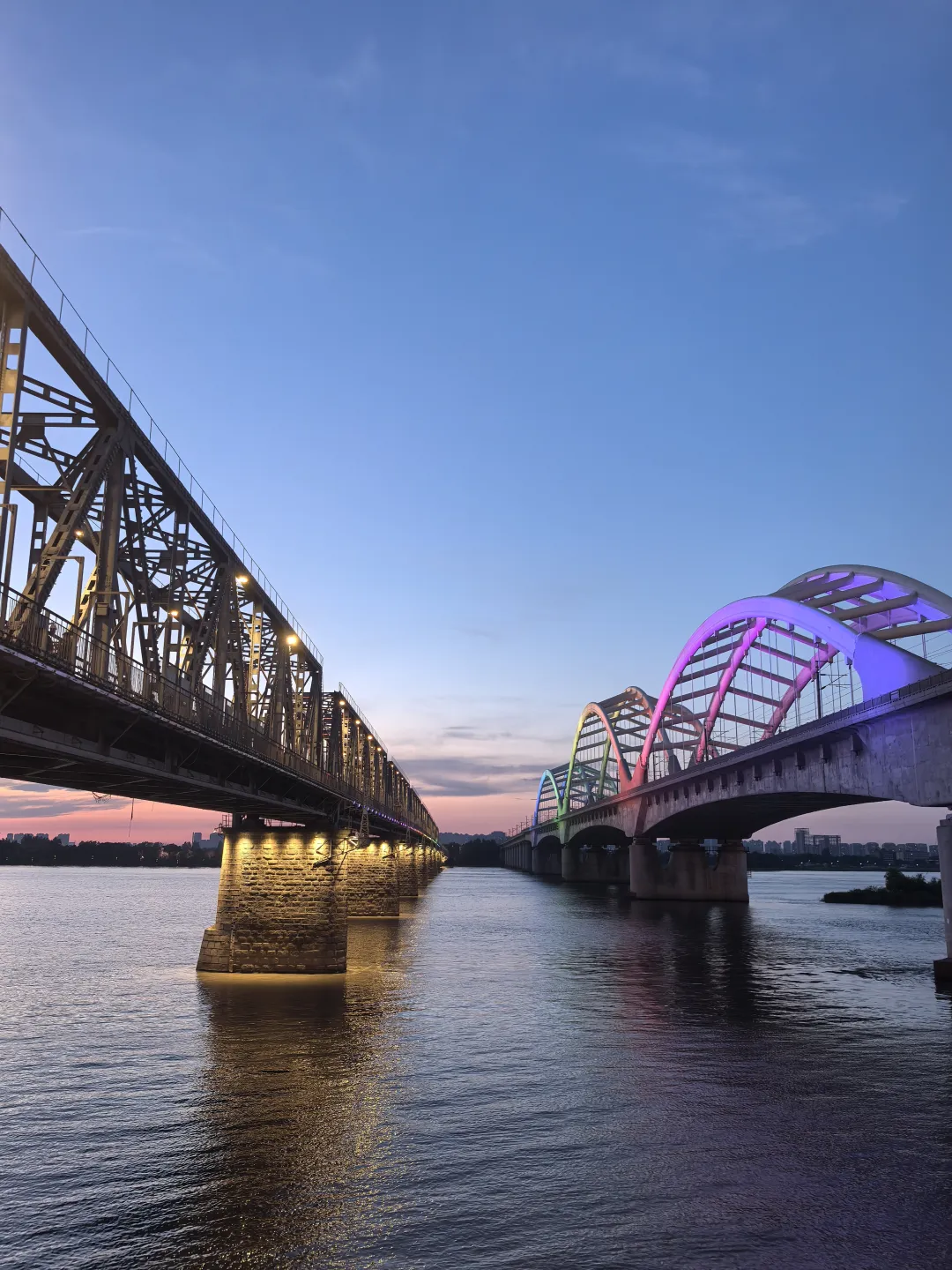 2014年老江桥“退役”,要建新的铁路大桥,把老桥拆了,好多哈尔滨人不愿意,就联名把老桥留下了。如今,新老江桥相邻而望,像长者牵起一个孩童,伴着江水讲起过去的故事。