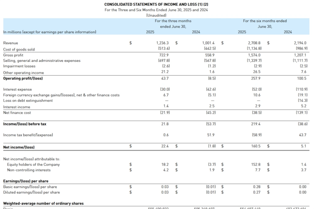 二季度,亚玛芬毛利率增长270个基点至58.5%;调整后毛利率增长250个基点至58.7%;营业利润增长614%至4400万美元;调整后营业利润增长130%至6700万美元,其中包括第二季度收到的1900万美元政府补助。