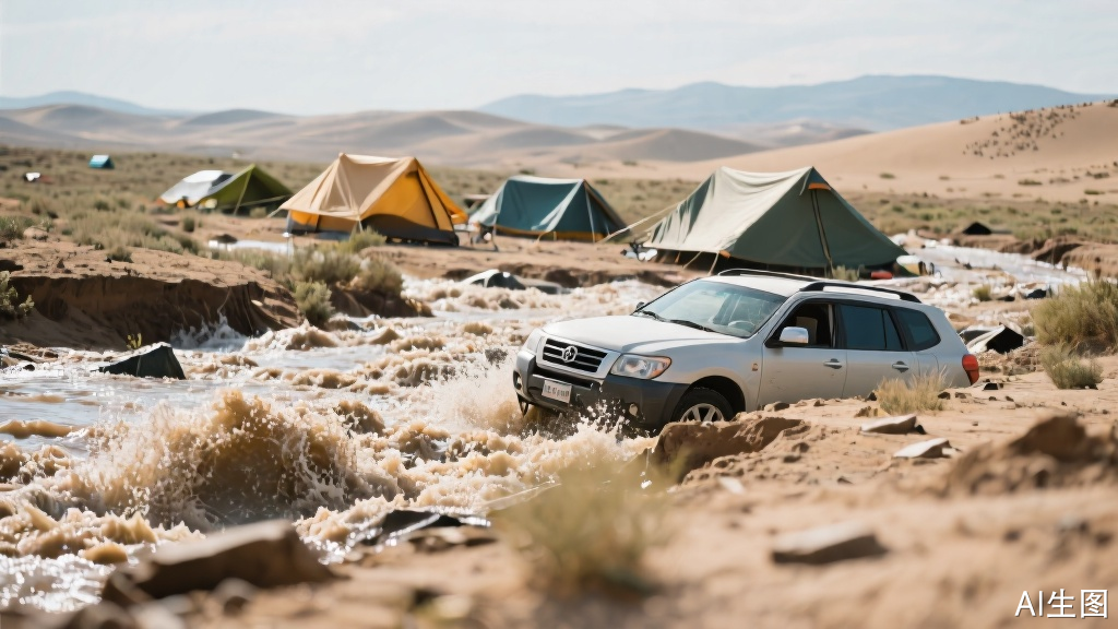 作为户外领队,田风已经对山洪见怪不怪了。他回忆道,今年上个月、去年和前些年,中旗和后旗都发生过山洪,还冲走了越野车。张黎也印证了这个说法。因此当地人通常选择晴天前往棺材山。