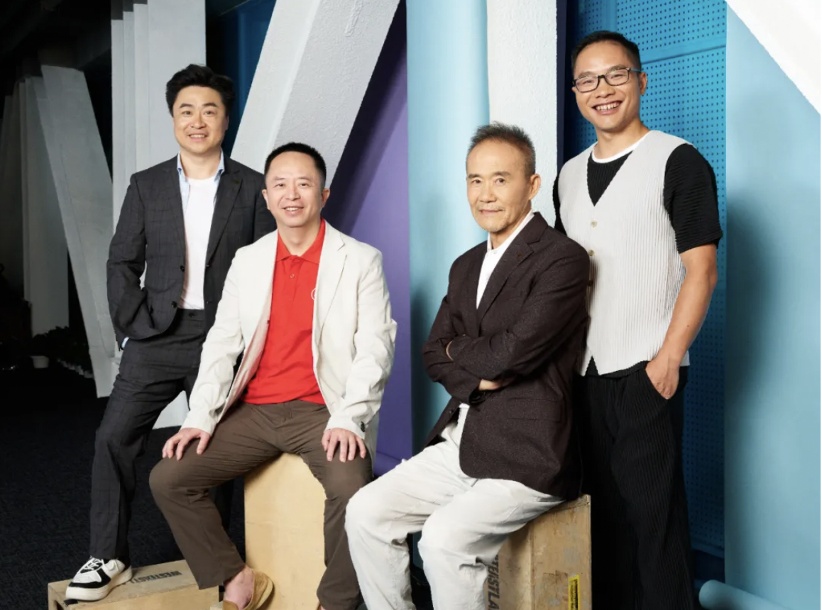 “我攀”攀岩馆的创始人和投资人,从左到右分别是赵雷、周鸿祎、王石、黎双富。来源:受访者