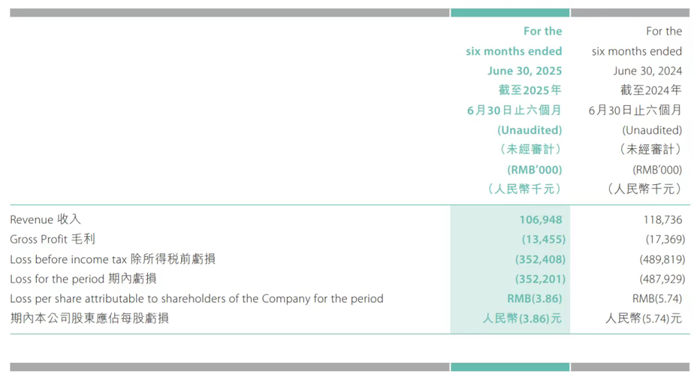 已在香港上市的重塑能源,同样面临巨大的经营压力。根据其公布的2025年上半年(截至6月30日)业绩,公司实现收入约为1.07亿元人民币,较2024年同期减少了约9.9% 。更值得警惕的是,其毛利为-0.135亿元 ,由正转负,说明产品销售的直接成本已经超过了销售收入,这在制造业中是极为危险的信号。