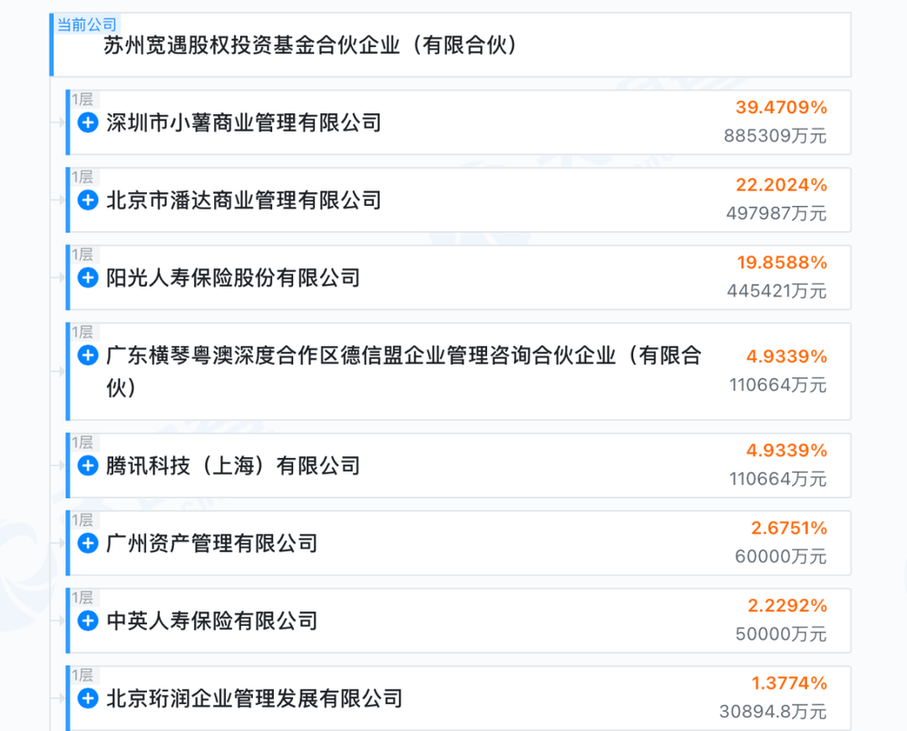 据天眼查,由13家企业出资组成的宽遇私募中,就有两家腾讯系企业。