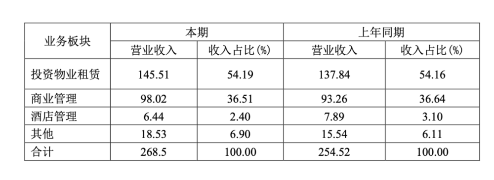 根据中金公司《大连万达商业管理集团股份有限公司公司债券受托管理事务报告(2024年度)》,截至2024年6月30日,大连万达商管实现营收268.5亿元,其中投资物业租赁收入145.51亿元,商业管理收入98.02亿元。