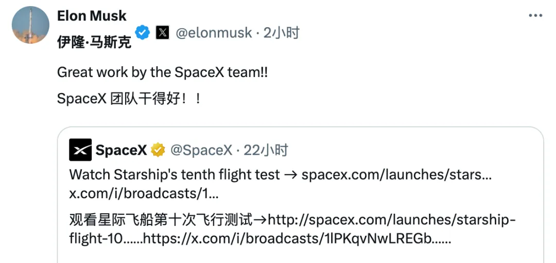 不过,SpaceX 星舰第十次试飞今天还是得到了命运女神的眷顾,在接连“四连炸”后终于不负众望,完成既定关键任务。质疑马斯克“画饼能力”的声音,至少在今天得暂时安静了。