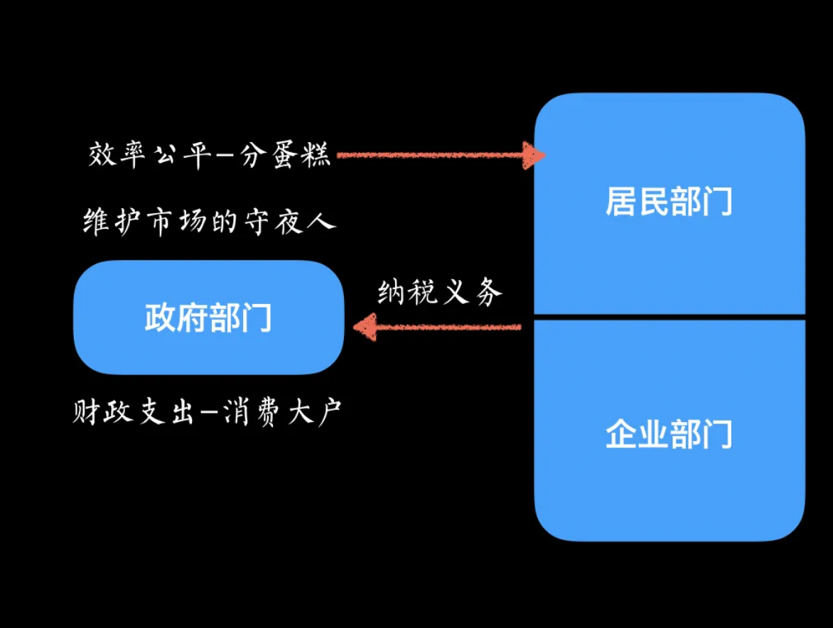 接下来是政府部门,政府是经济的管理者,守夜人。