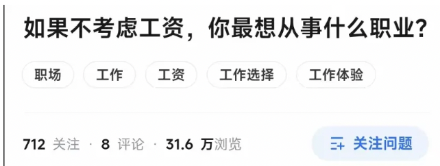 网上曾经有人问“如果不考虑工资,你最想做什么?”