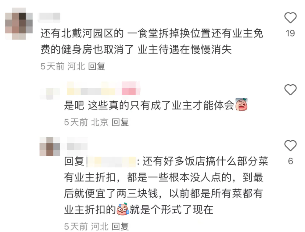 还有餐厅给业主的折扣,也从全部可享变成了部分参与,优惠更像是一种形式。
