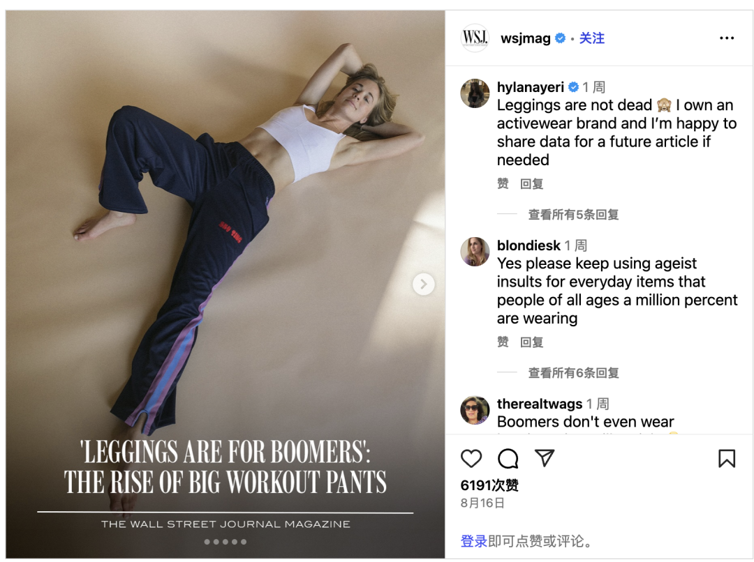 在外网一篇评价紧身裤已经成为过时穿搭文化的instagram中,不少网友在评论中直接怼道:“写这篇文章的人根本没做练过普拉提”“试试看穿宽松裤去骑动感单车?”这些评论点出了一个事实:在强调动作细节和稳定性的训练场景里,宽松裤真的不太好用。