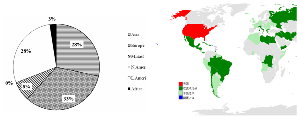而且美国与欧洲的特殊关系并非是现在才开始的,其渗透可谓源远流长。据统计,从1946年1月1日到2000年12月31日,美国和苏联/俄罗斯共进行了117次党派选举干预。其中81次是由美国进行的。而这81次干预中,将近1/3发生在欧洲,位居美国干涉区域之冠。