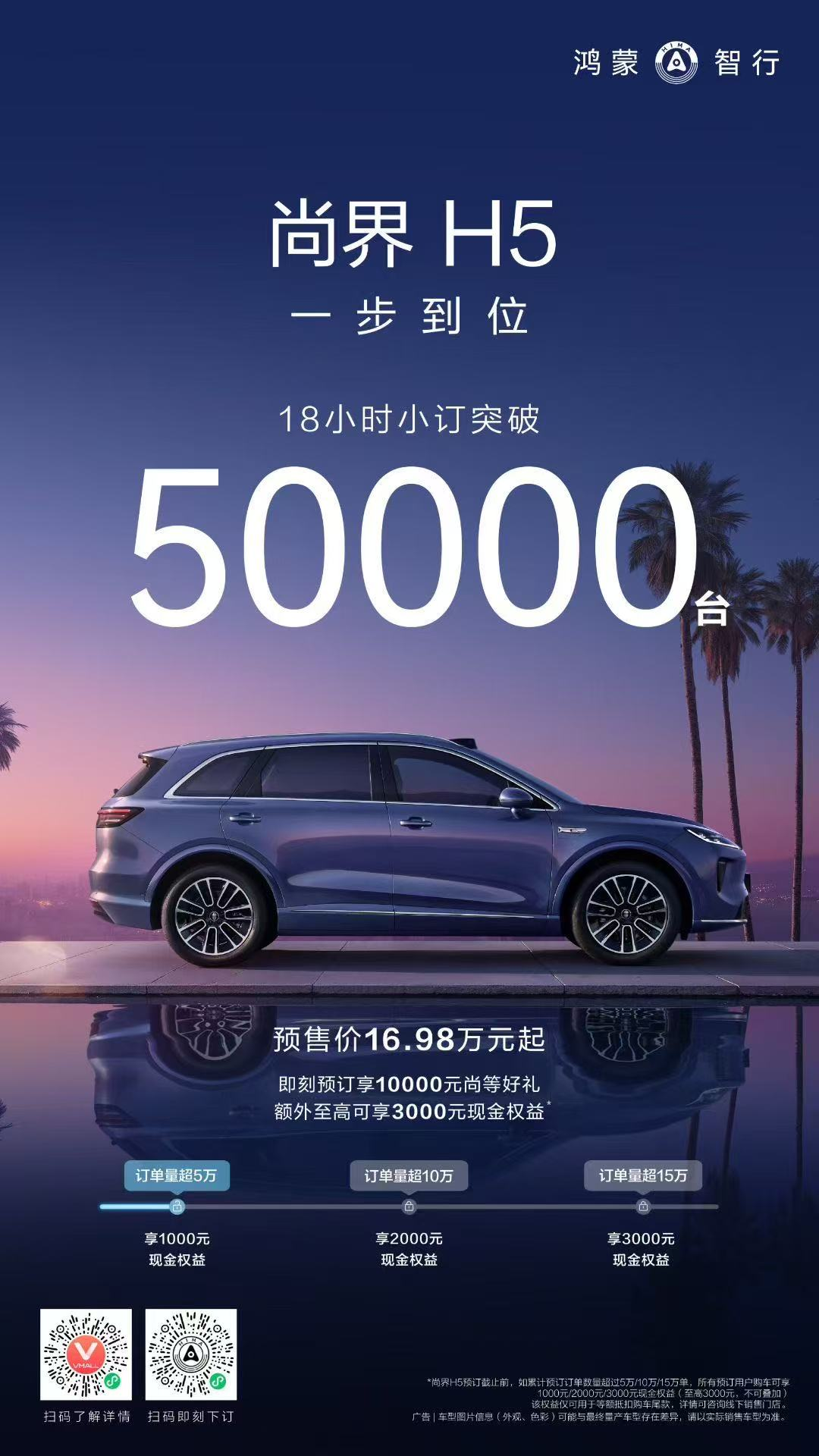 8 月 25 日,在成都举行的秋季新品发布会上,华为与上汽合作打造的首款 SUV 尚界 H5 启动预订,仅用 18 小时就收获 5 万台订单。