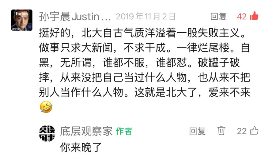 如今我的模型已经破产了。谁能想到李国庆又二婚了,李斌居然又活过来了,而孙宇晨也成首富了。而我距离首富最近的一次,就是他在我文章下的留言。